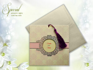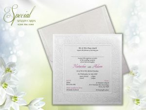Square Red Wedding Card with Floral Pattern and Ribbon Bow