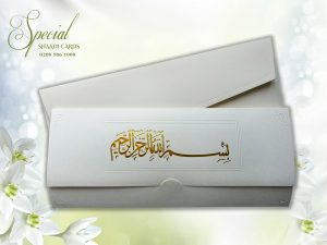 White Folded DL Card with Gold Foiled Bismillah