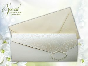 White Envelope Wedding Card with Silver Foiled Filigree