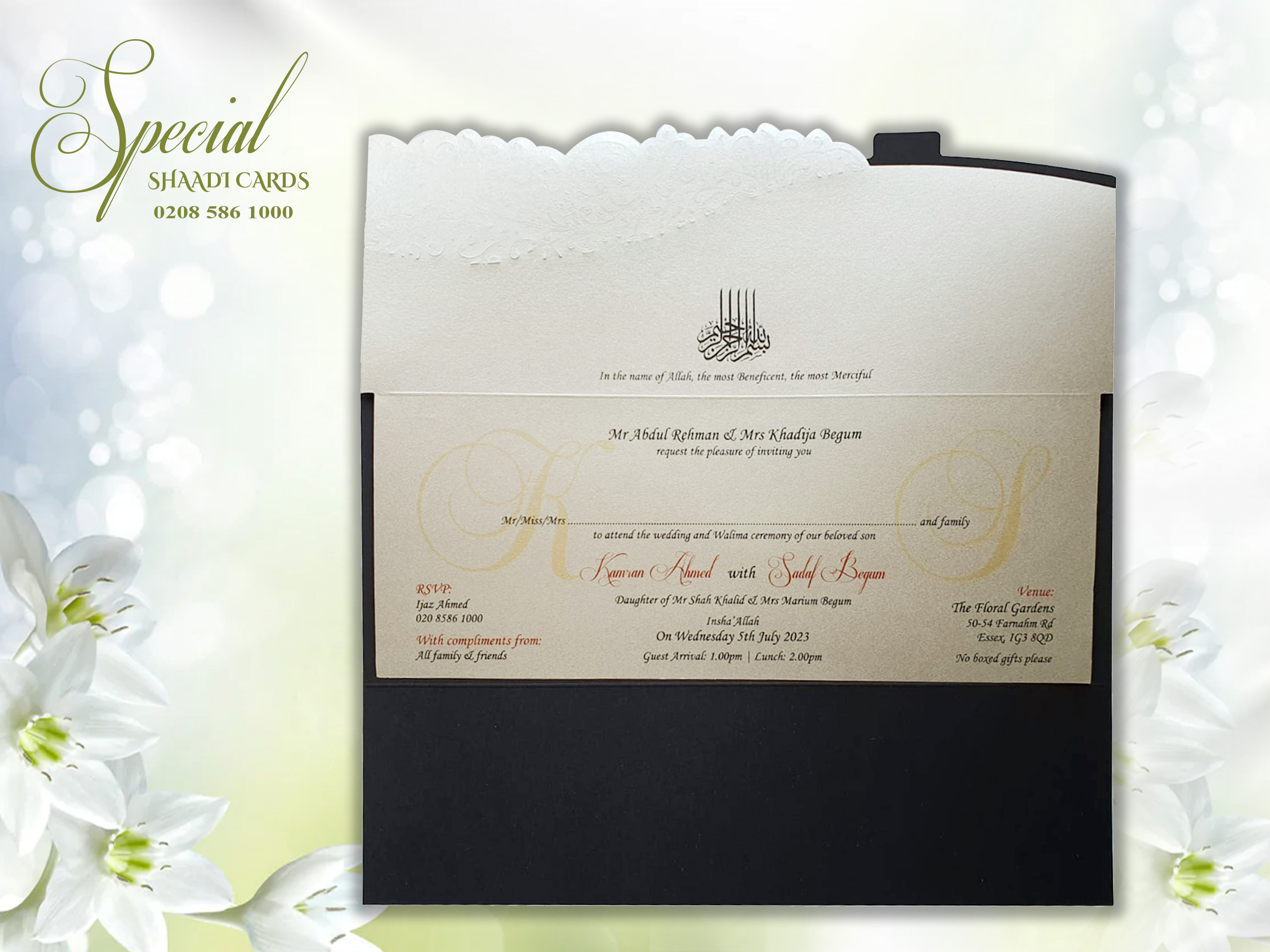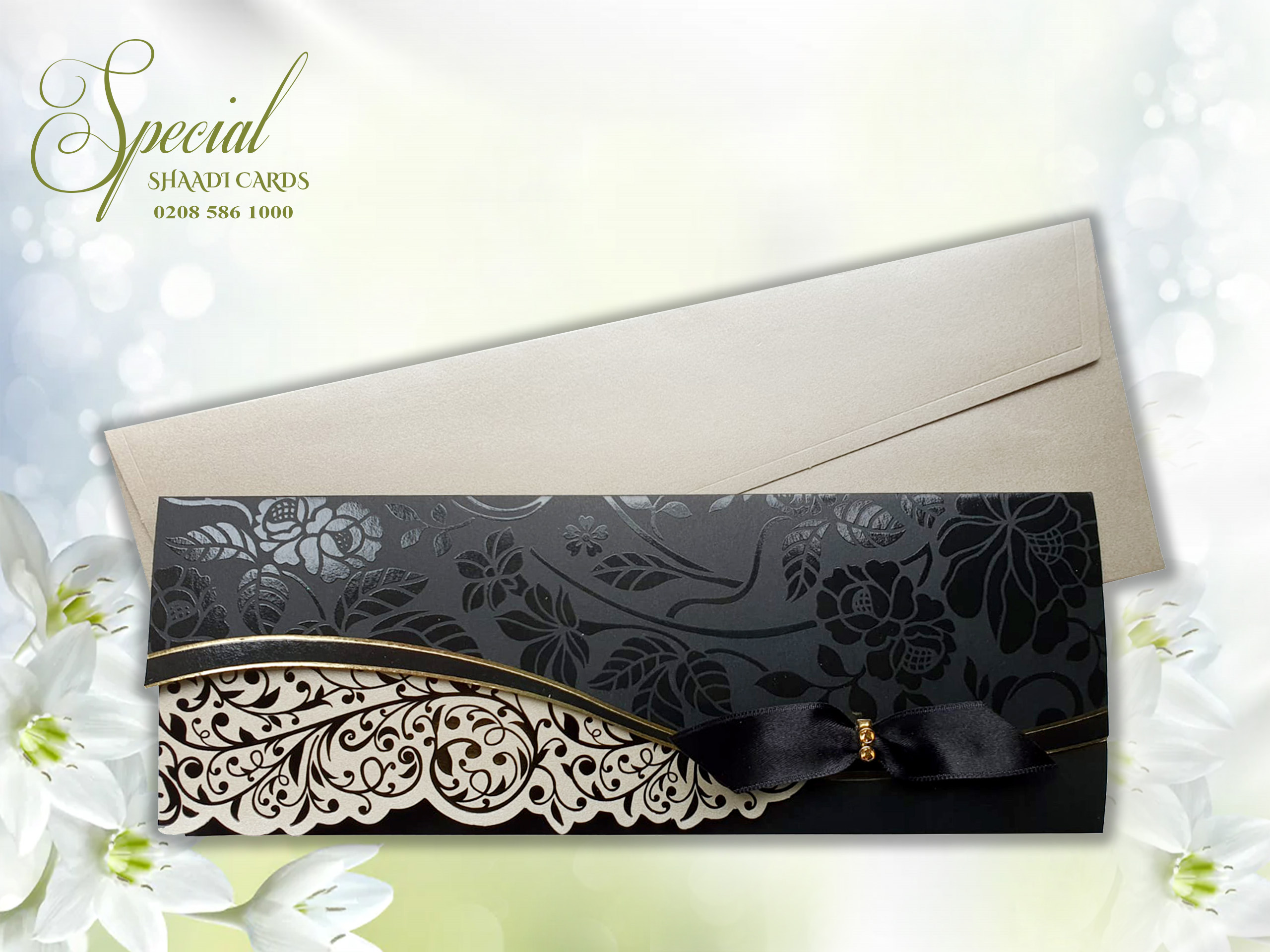 Be the first to review “Black & Gold Wedding Invite wit Embossed Floral Finish”