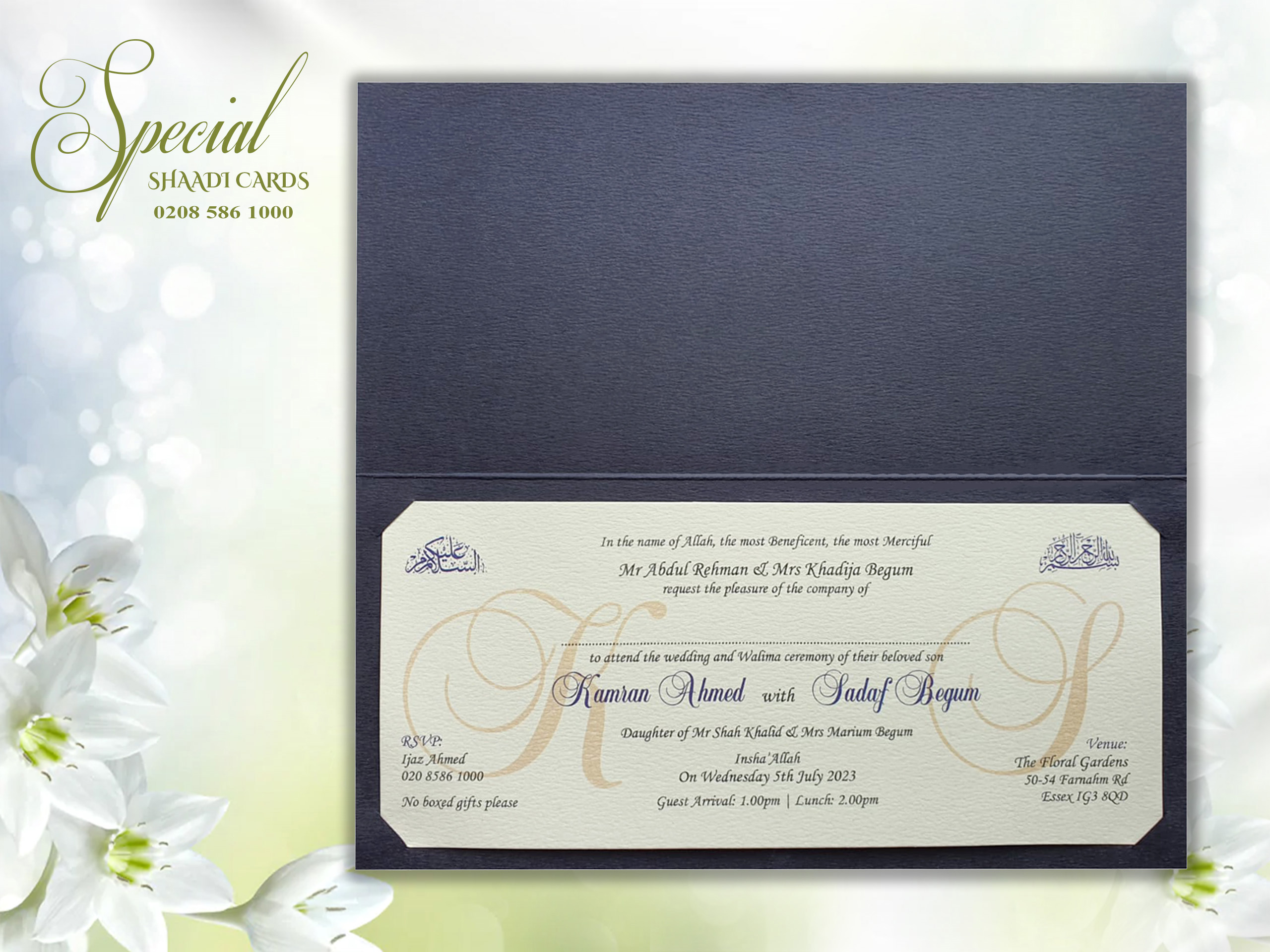 This card is supplied with an envelope and one insert, personalization is included. Additional inserts can be purchased for other functions or to add more information such as directions or RSVPs. If you require additional inserts please also add that product to your cart. All our products are printed in the UK at our London warehouse. Please pop in to see the cards for yourself.