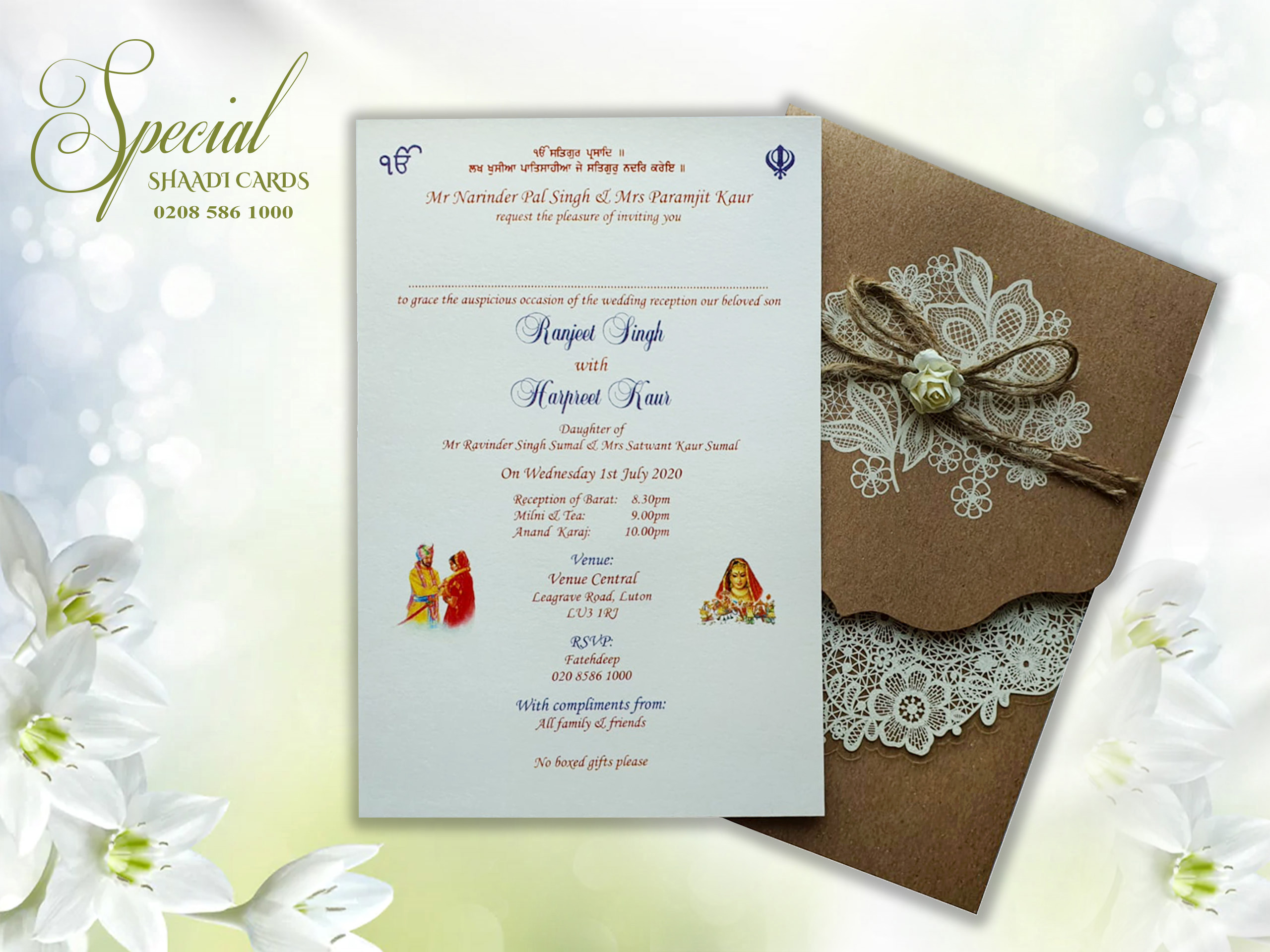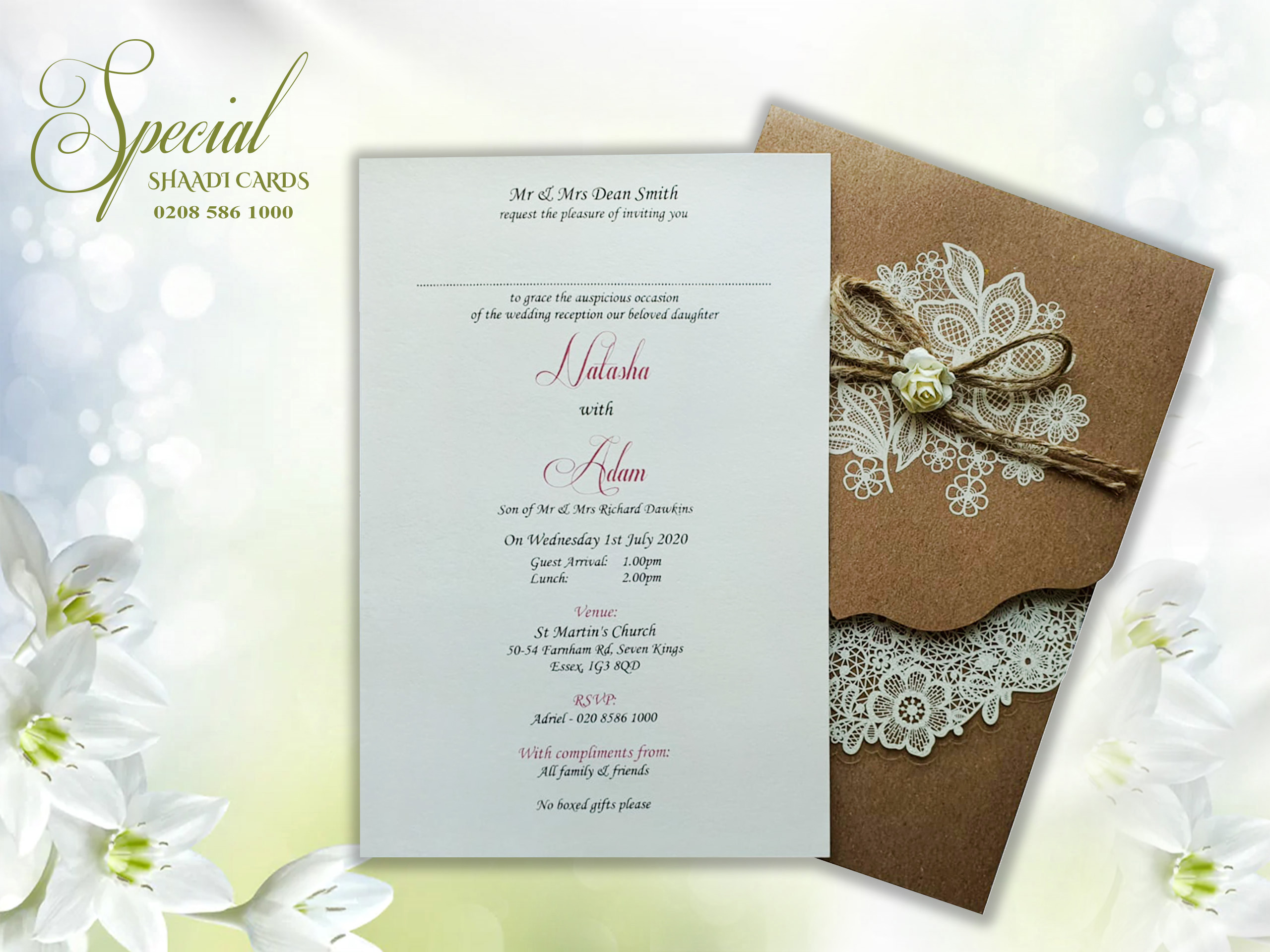 Brown Wedding Card with White Net Floral Pattern