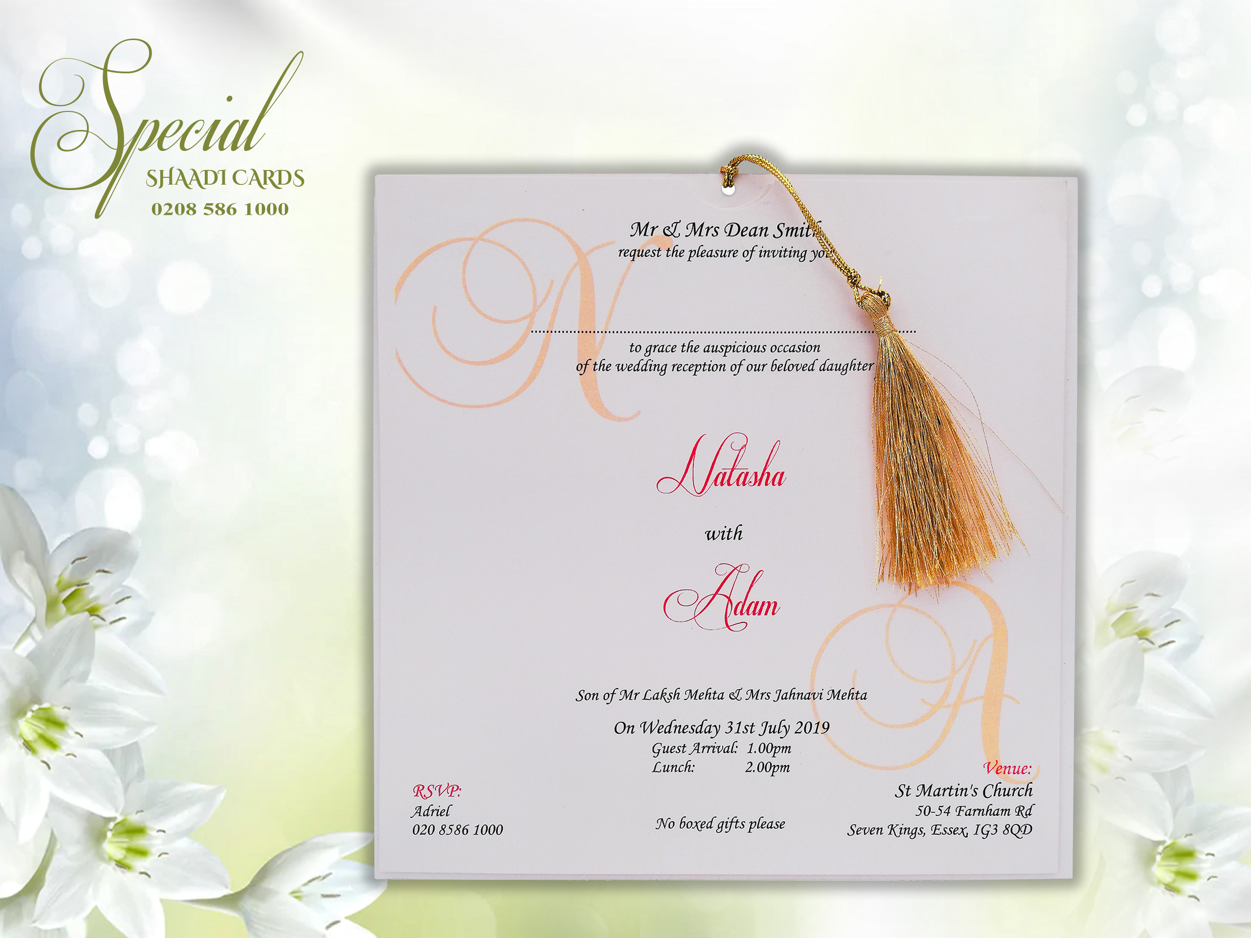 This card is supplied with an envelope and one insert, personalization is included. Additional inserts can be purchased for other functions or to add more information such as directions or RSVPs. If you require additional inserts please also add that product to your cart. All our products are printed in the UK at our London warehouse. Please pop in to see the cards for yourself.