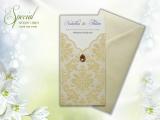 Cream Pocket Wedding Invite with Velvet Finish and a Pearl