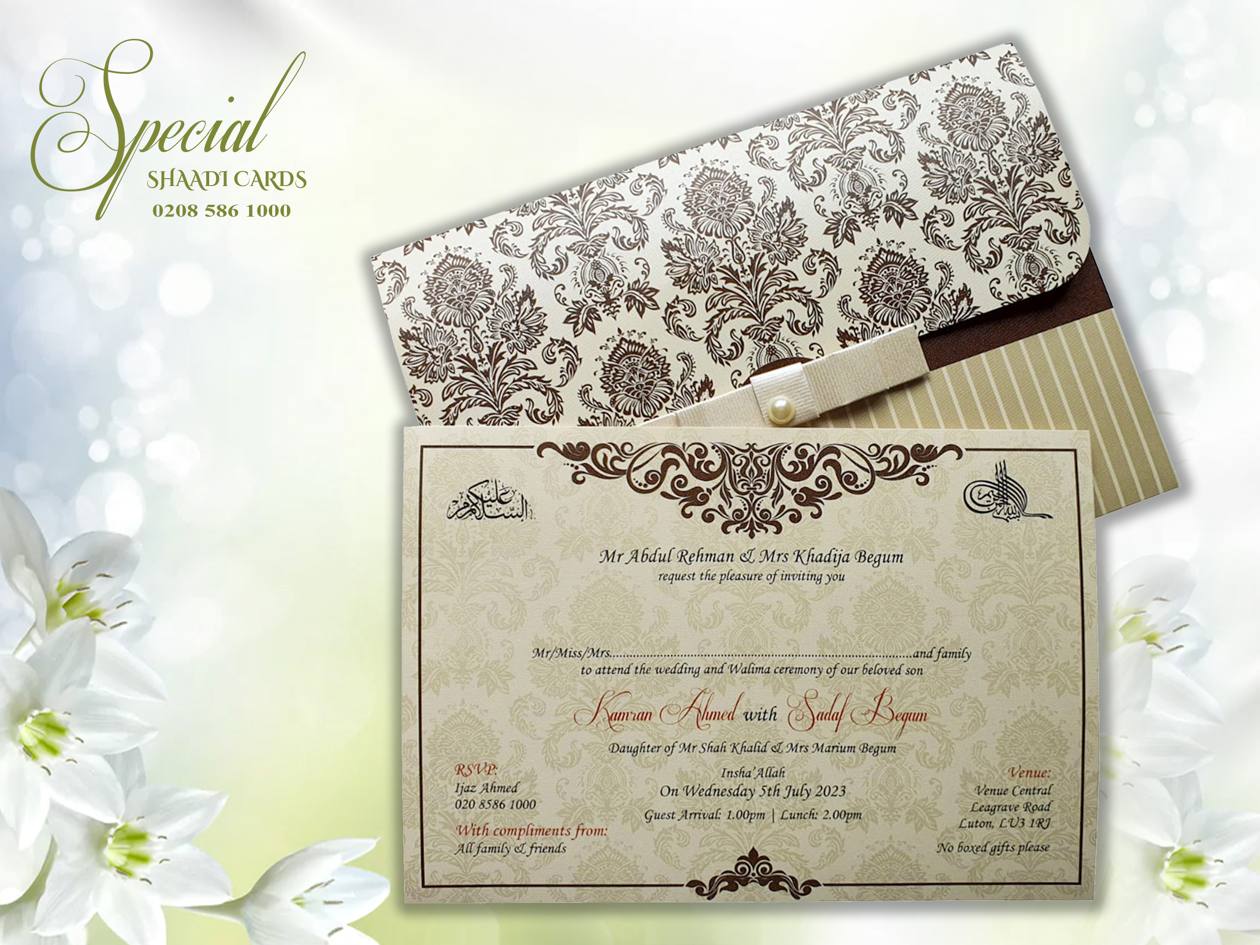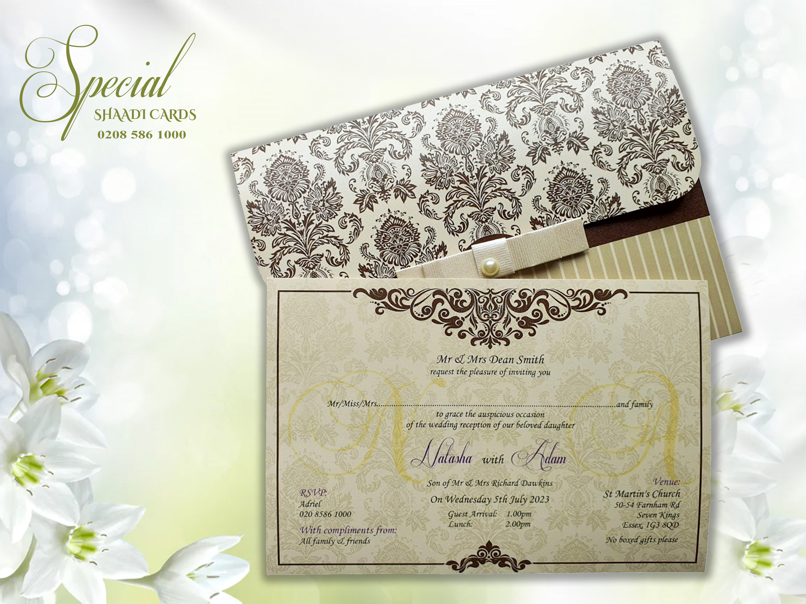 This card is supplied with an envelope and one insert, personalization is included. Additional inserts can be purchased for other functions or to add more information such as directions or RSVPs. If you require additional inserts please also add that product to your cart. All our products are printed in the UK at our London warehouse. Please pop in to see the cards for yourself.