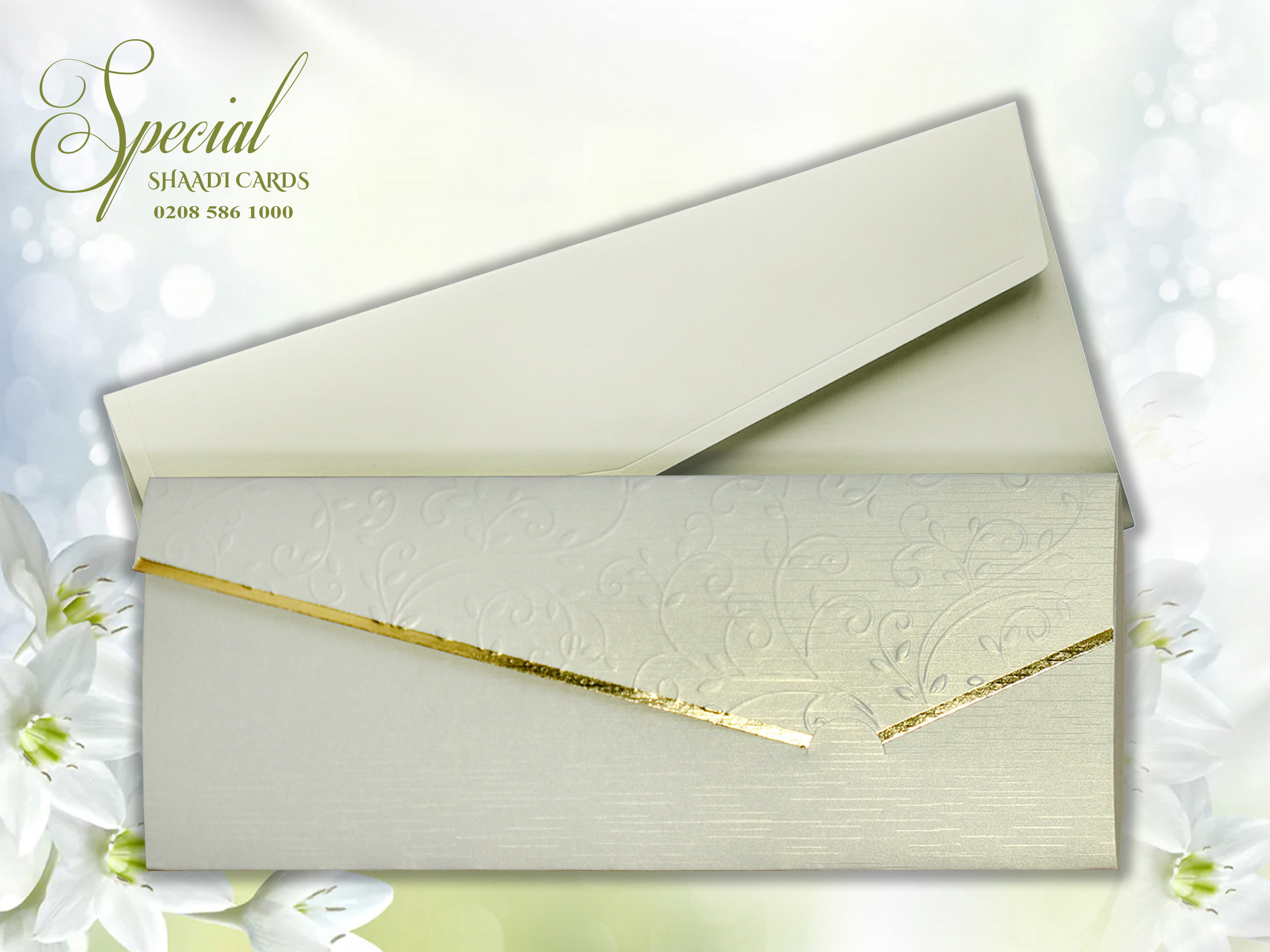 DL Floral Embossed Single Sheet Wedding Card with Gold Border