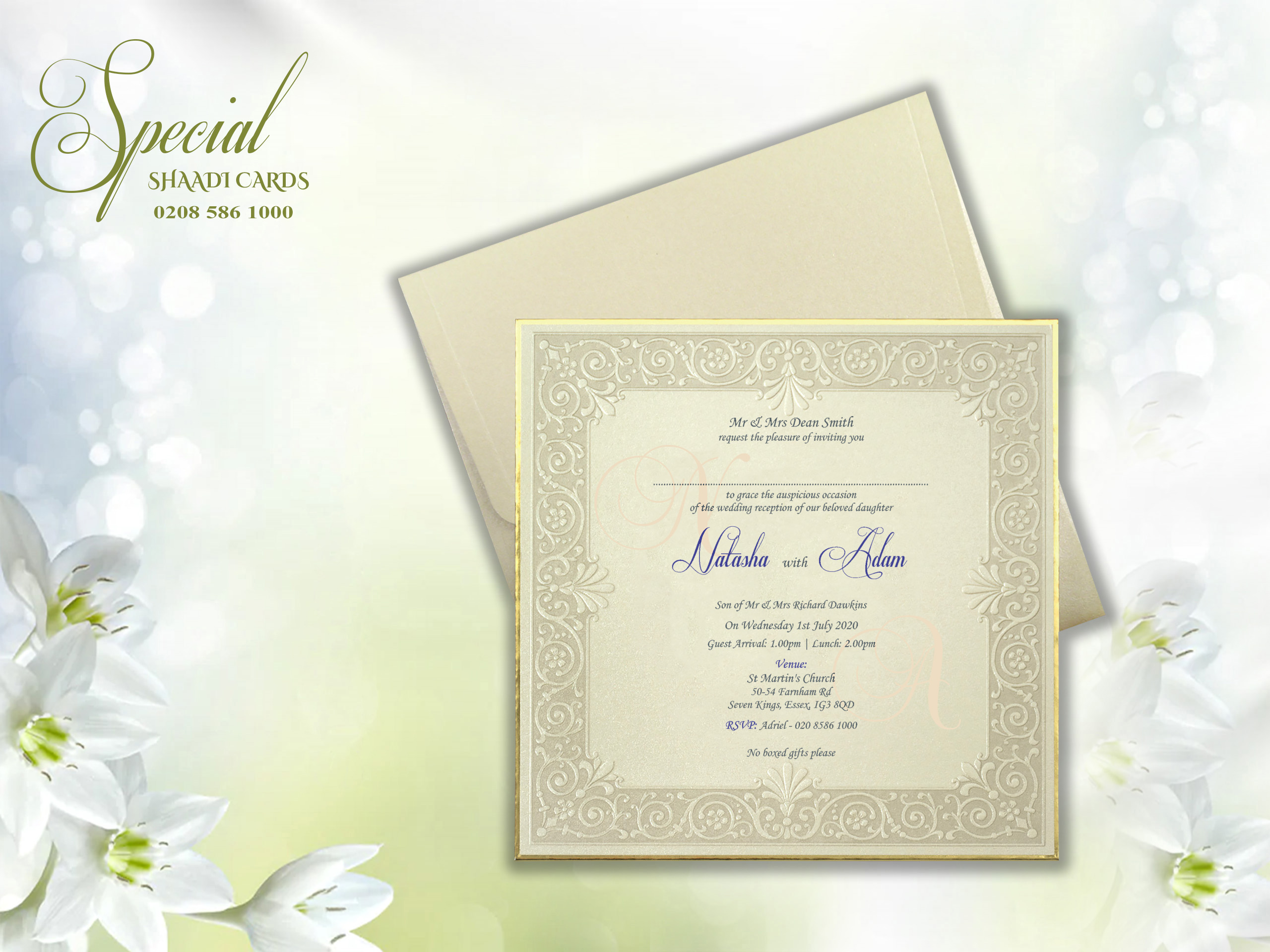 This card is supplied with an envelope and is personalized with your details. The printing is done on the card itself instead of a separate insert. Additional inserts can be purchased for other functions or to add more information such as directions or RSVPs. If you require additional inserts please also add that product to your cart. All our products are printed in the UK at our London warehouse. Please pop in to see the cards for yourself.