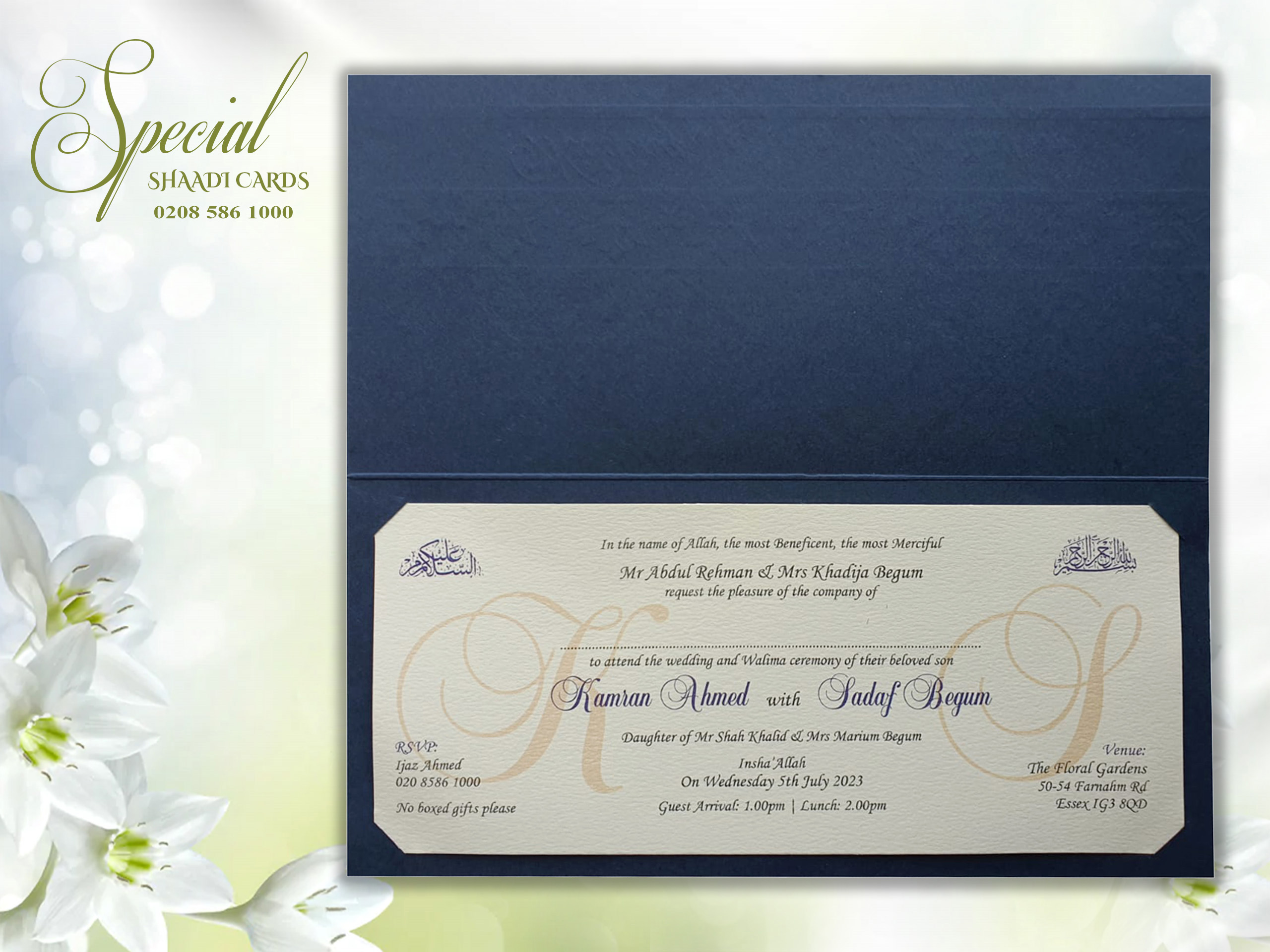 This card is supplied with an envelope and one insert, personalization is included. Additional inserts can be purchased for other functions or to add more information such as directions or RSVPs. If you require additional inserts please also add that product to your cart. All our products are printed in the UK at our London warehouse. Please pop in to see the cards for yourself.