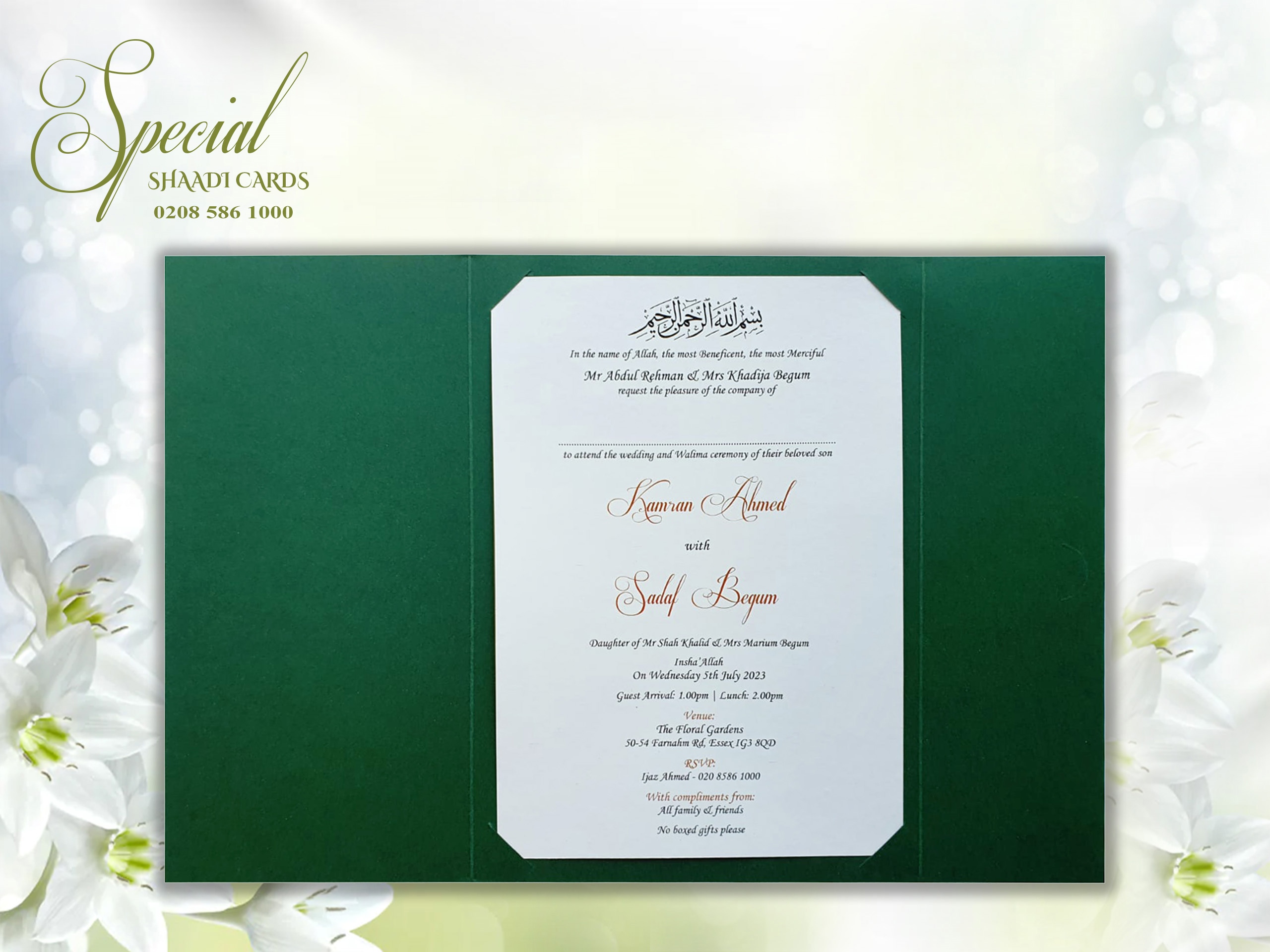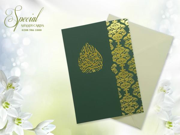 Green Arabesque Gold Foiled Two Fold Muslim Wedding Invite