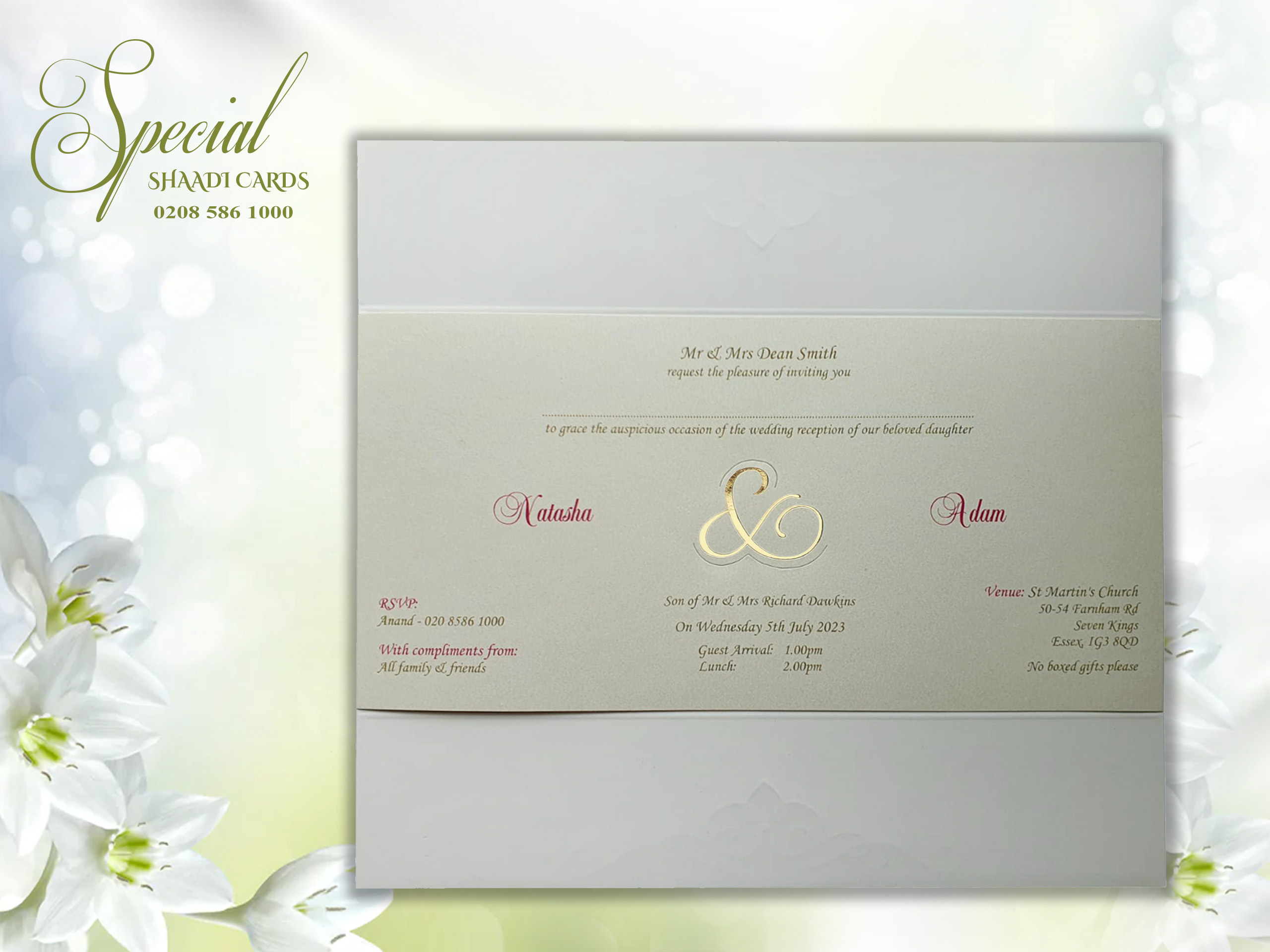 This card is supplied with an envelope and one insert, personalization is included. Additional inserts can be purchased for other functions or to add more information such as directions or RSVPs. If you require additional inserts please also add that product to your cart. All our products are printed in the UK at our London warehouse. Please pop in to see the cards for yourself.
