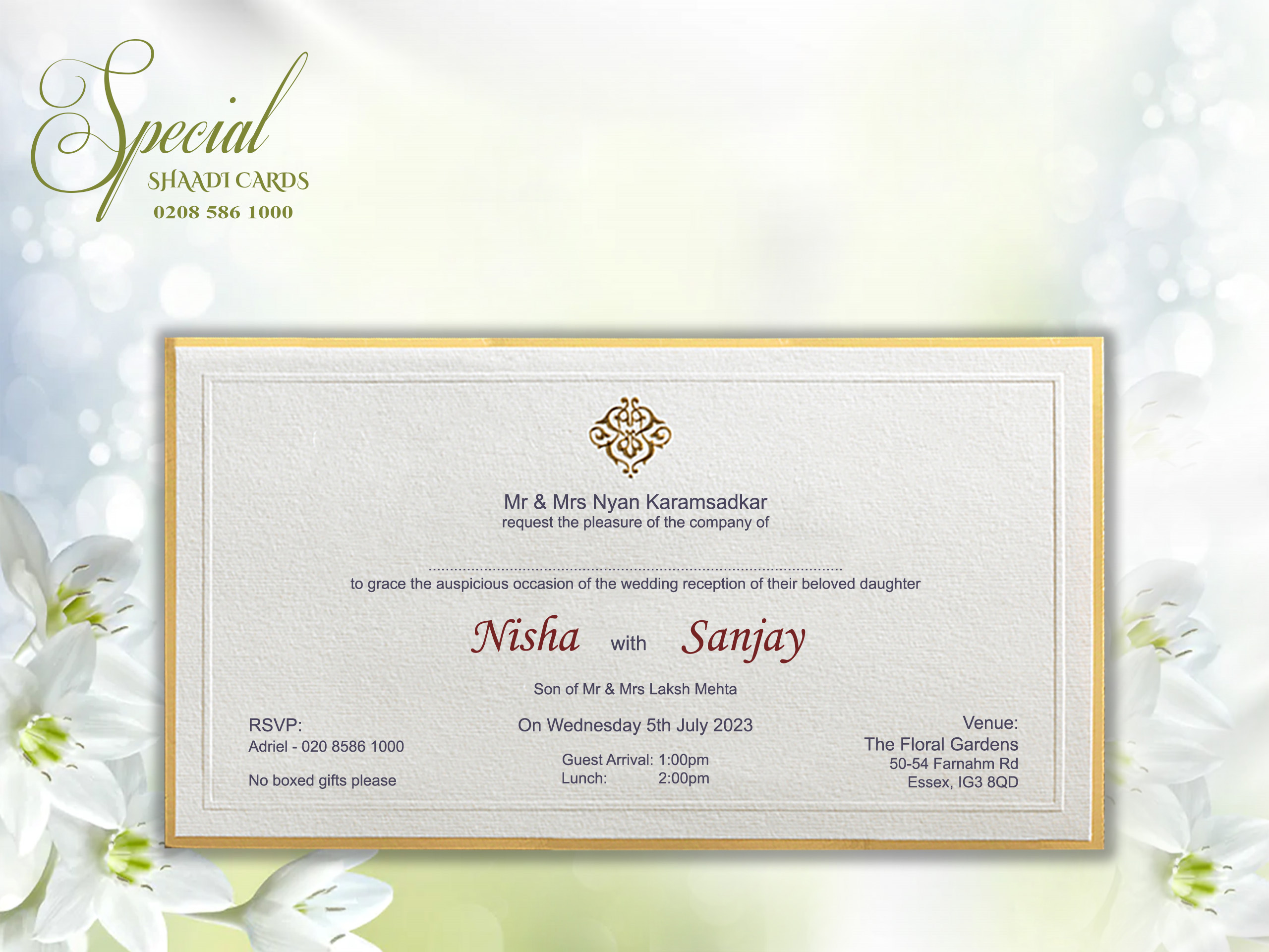 This card is supplied with an envelope and one insert, personalization is included. Additional inserts can be purchased for other functions or to add more information such as directions or RSVPs. If you require additional inserts please also add that product to your cart. All our products are printed in the UK at our London warehouse. Please pop in to see the cards for yourself.
