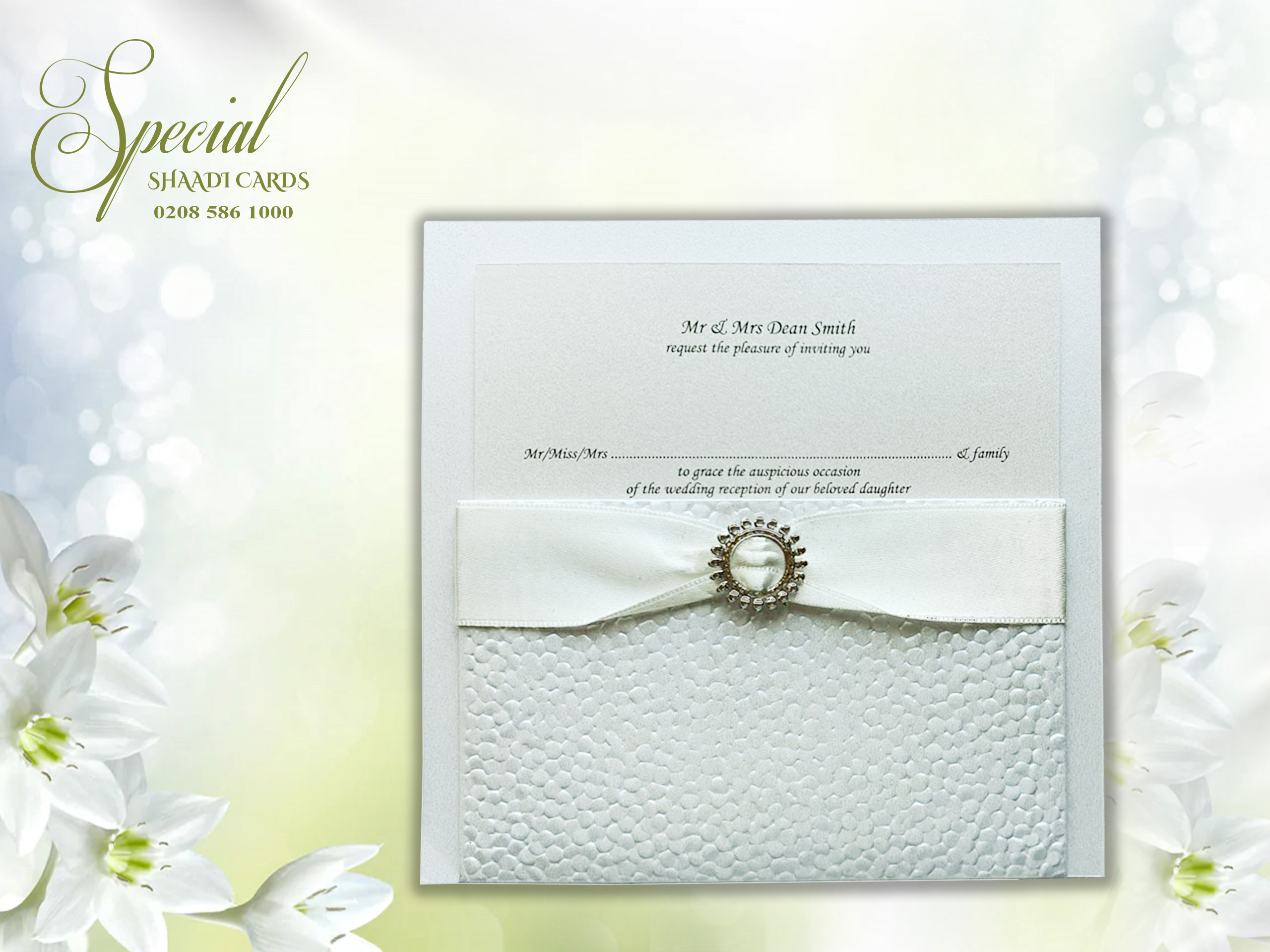 Square Pocket White Card with Embellished Ribbon
