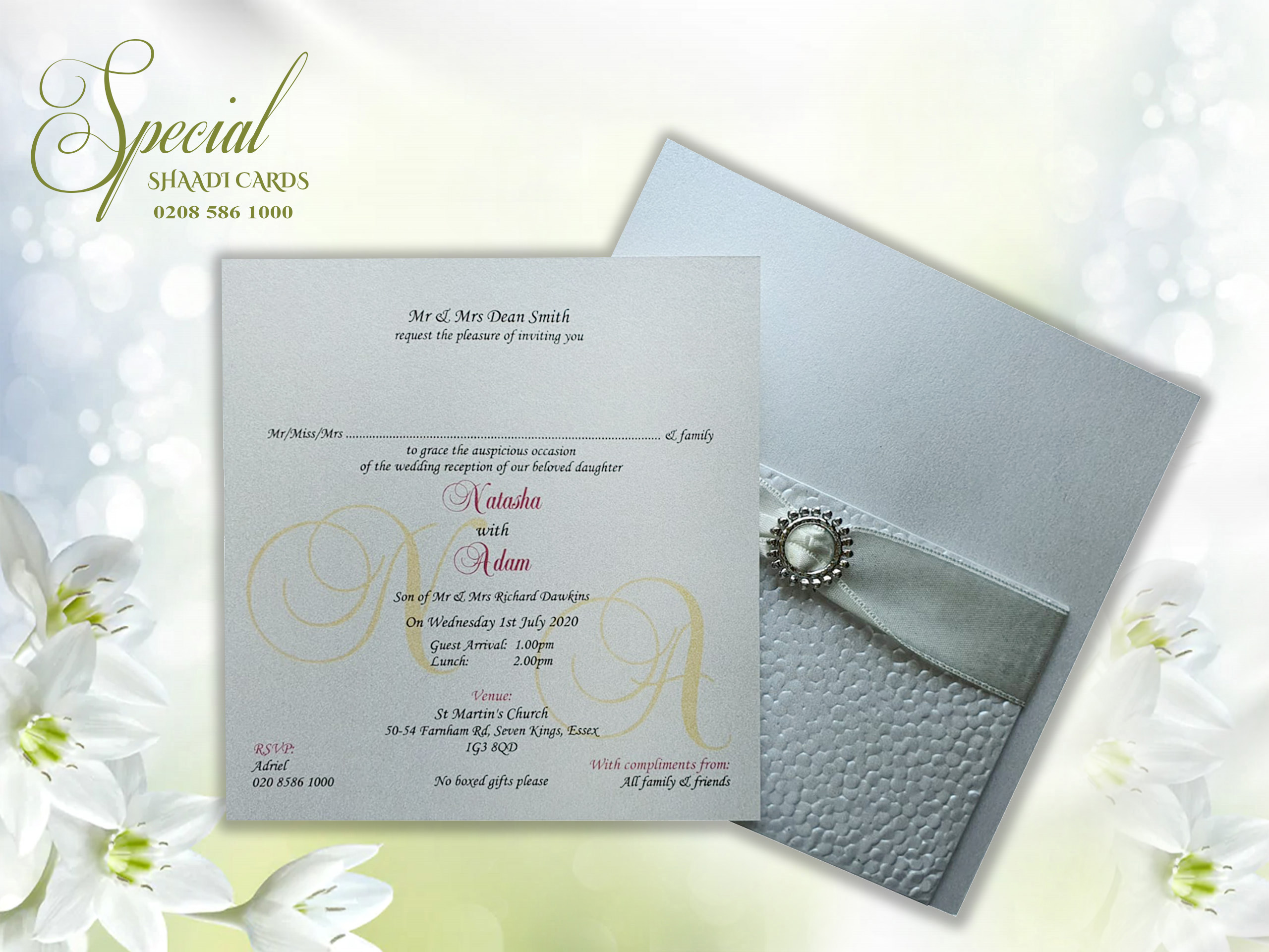 This card is supplied with an envelope and one insert, personalization is included. Additional inserts can be purchased for other functions or to add more information such as directions or RSVPs. If you require additional inserts please also add that product to your cart. All our products are printed in the UK at our London warehouse. Please pop in to see the cards for yourself.