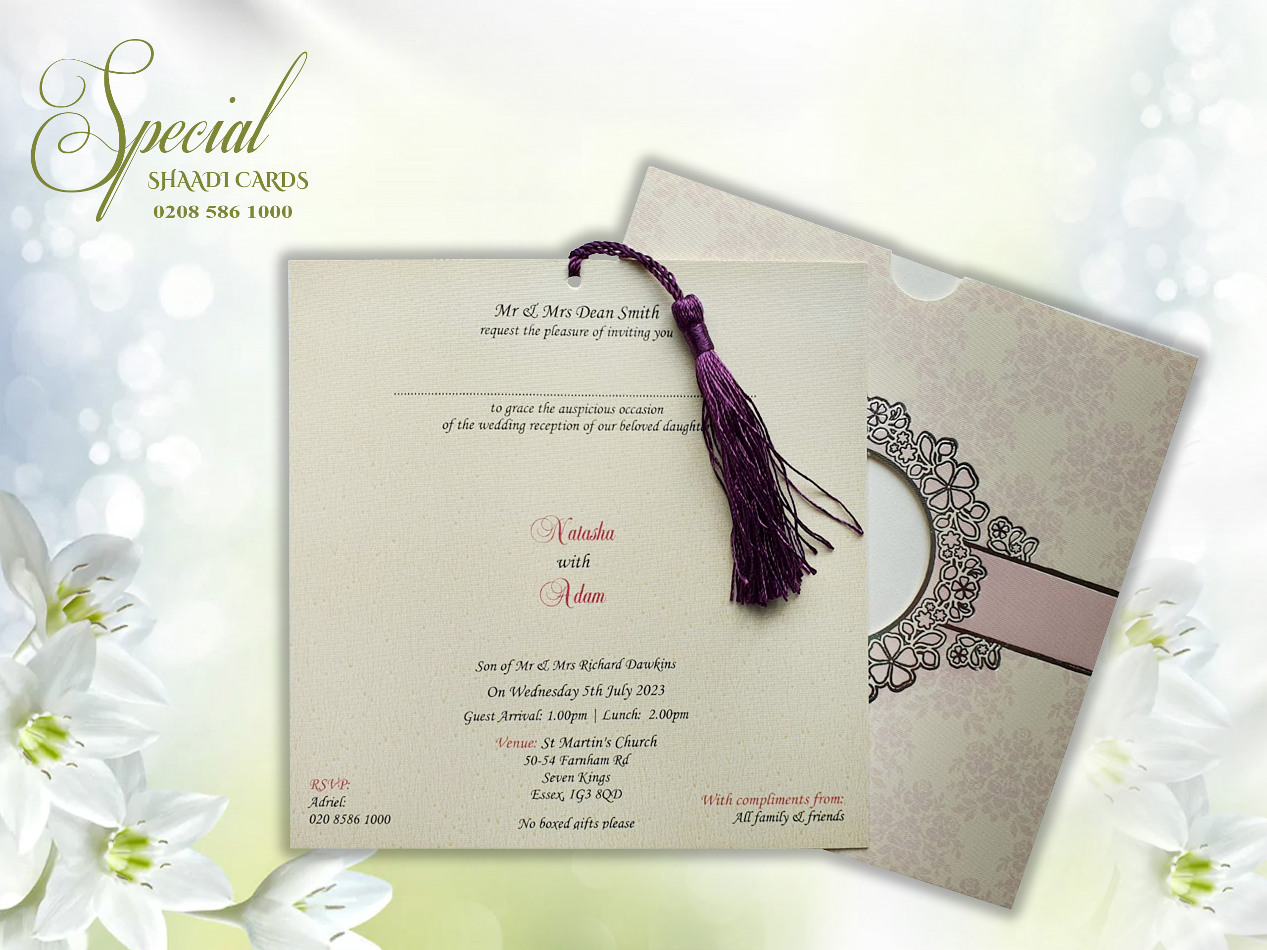 This card is supplied with an envelope and one insert, personalization is included. Additional inserts can be purchased for other functions or to add more information such as directions or RSVPs. If you require additional inserts please also add that product to your cart. All our products are printed in the UK at our London warehouse. Please pop in to see the cards for yourself.