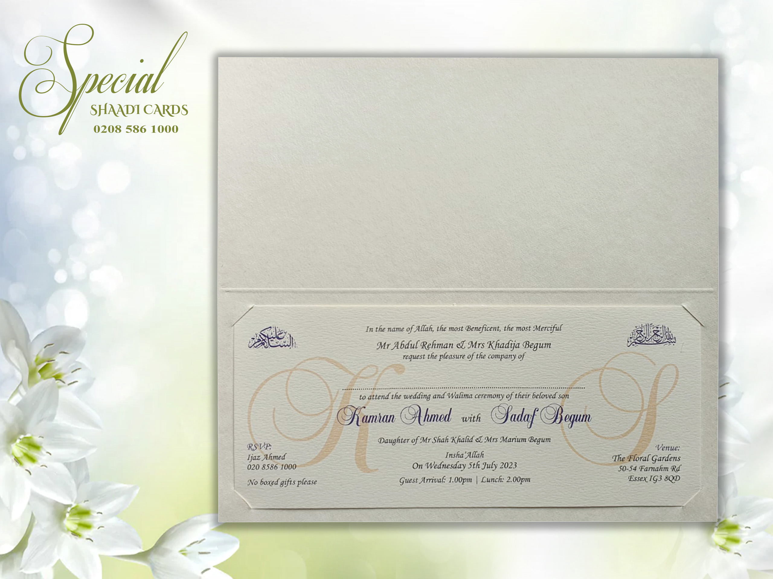 This card is supplied with an envelope and one insert, personalization is included. Additional inserts can be purchased for other functions or to add more information such as directions or RSVPs. If you require additional inserts please also add that product to your cart. All our products are printed in the UK at our London warehouse. Please pop in to see the cards for yourself.